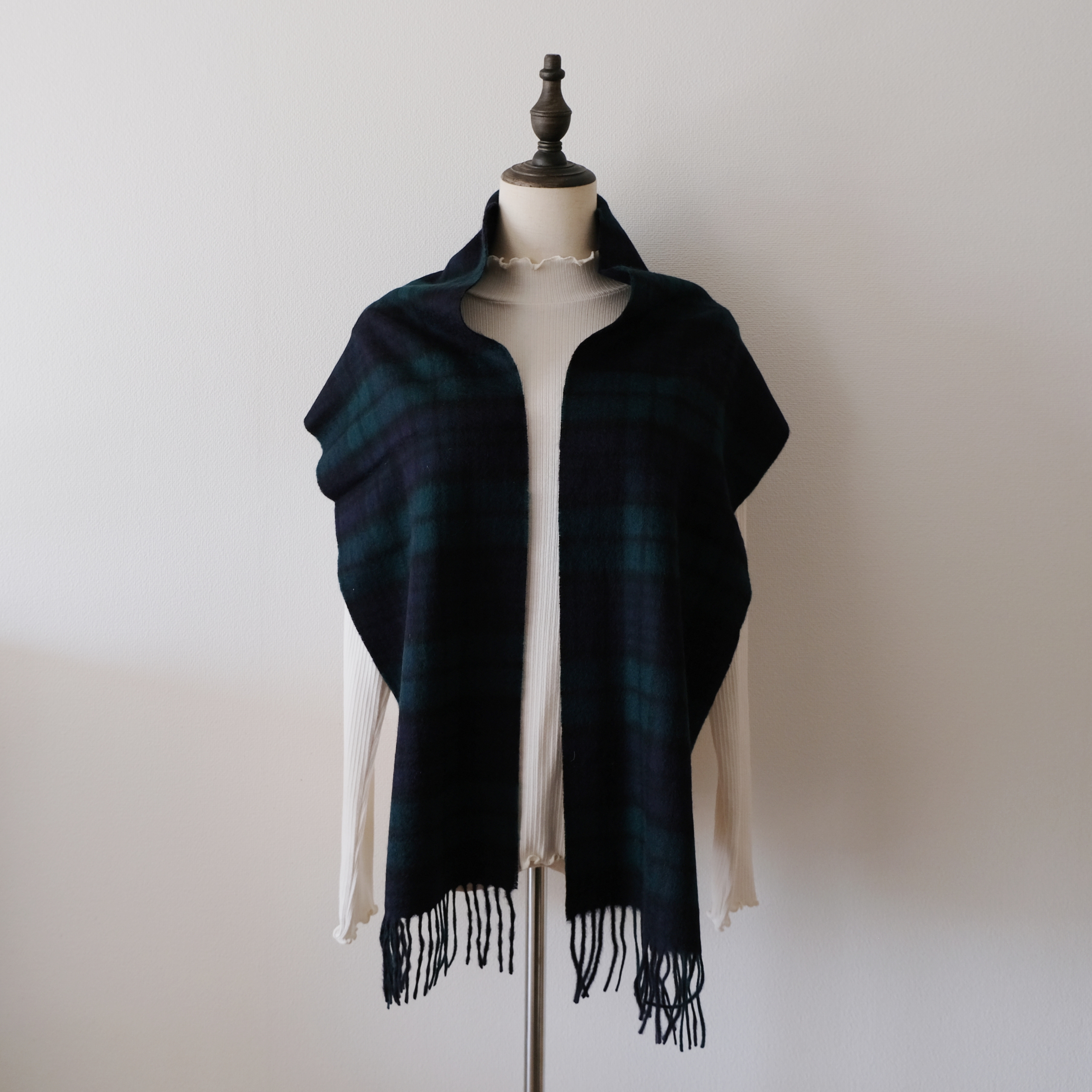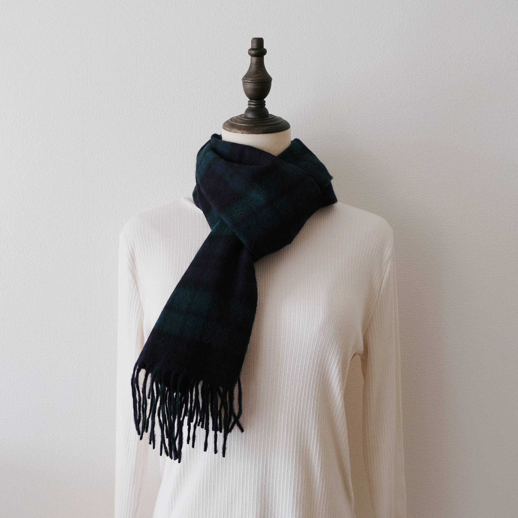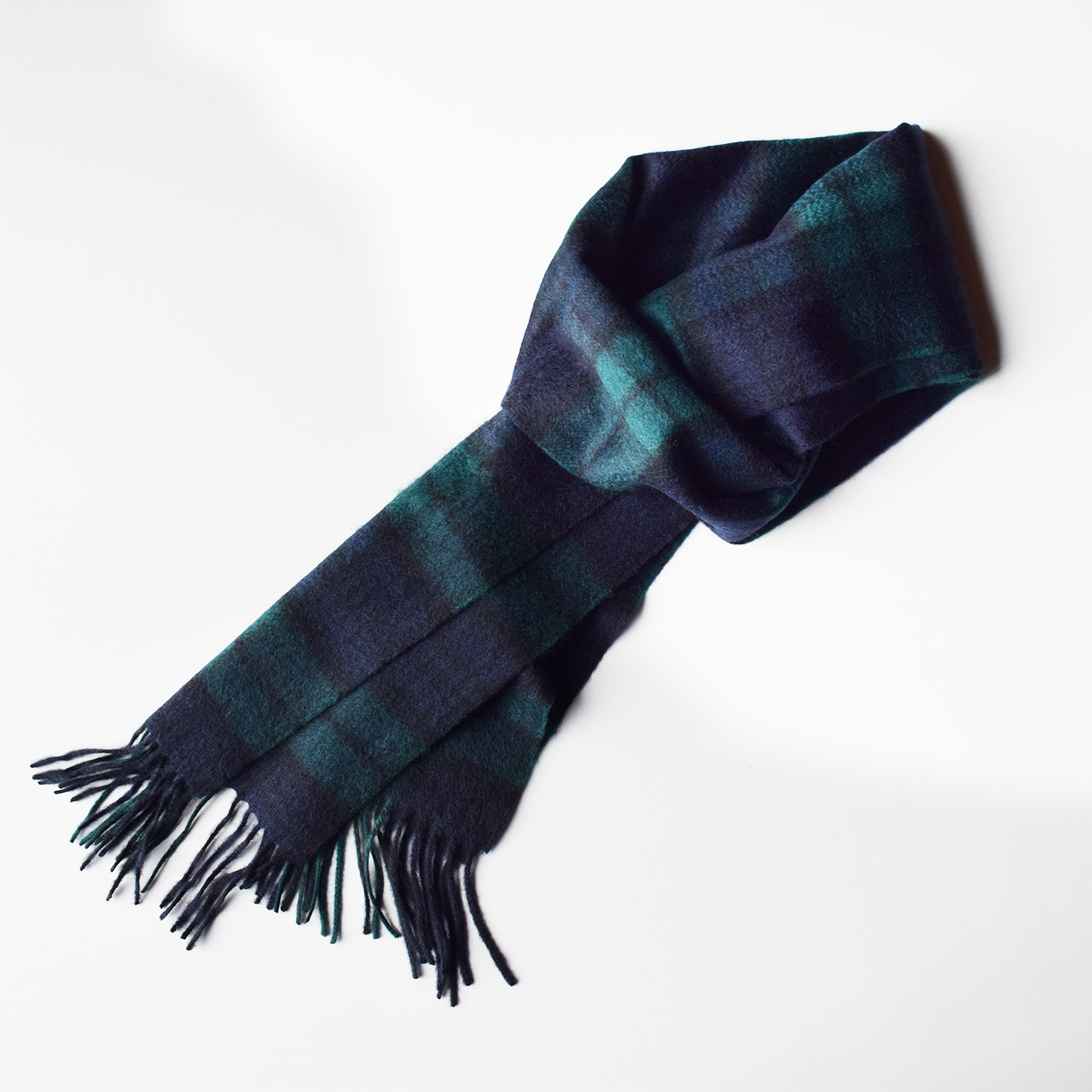 スコットランドより輸入しましたカシミヤ100%のスカーフです。軽く小ぶりでスーツやジャケットにもスッキリと合わせやすく、かつカシミヤのちからで首元をぽかぽかとあたためてくれます。