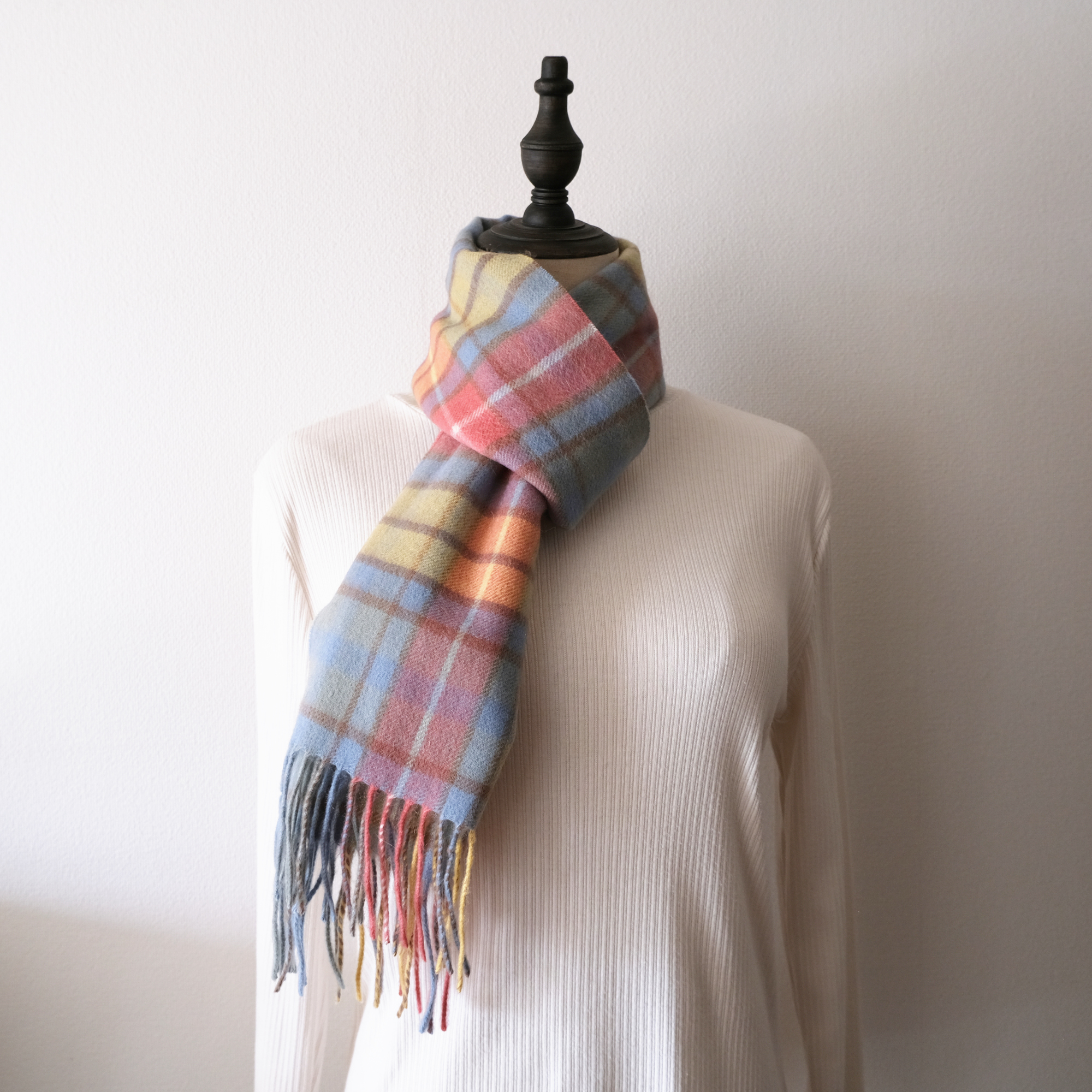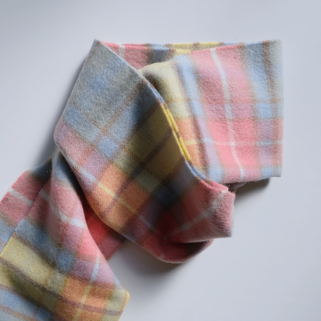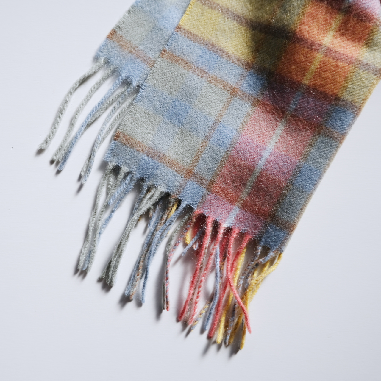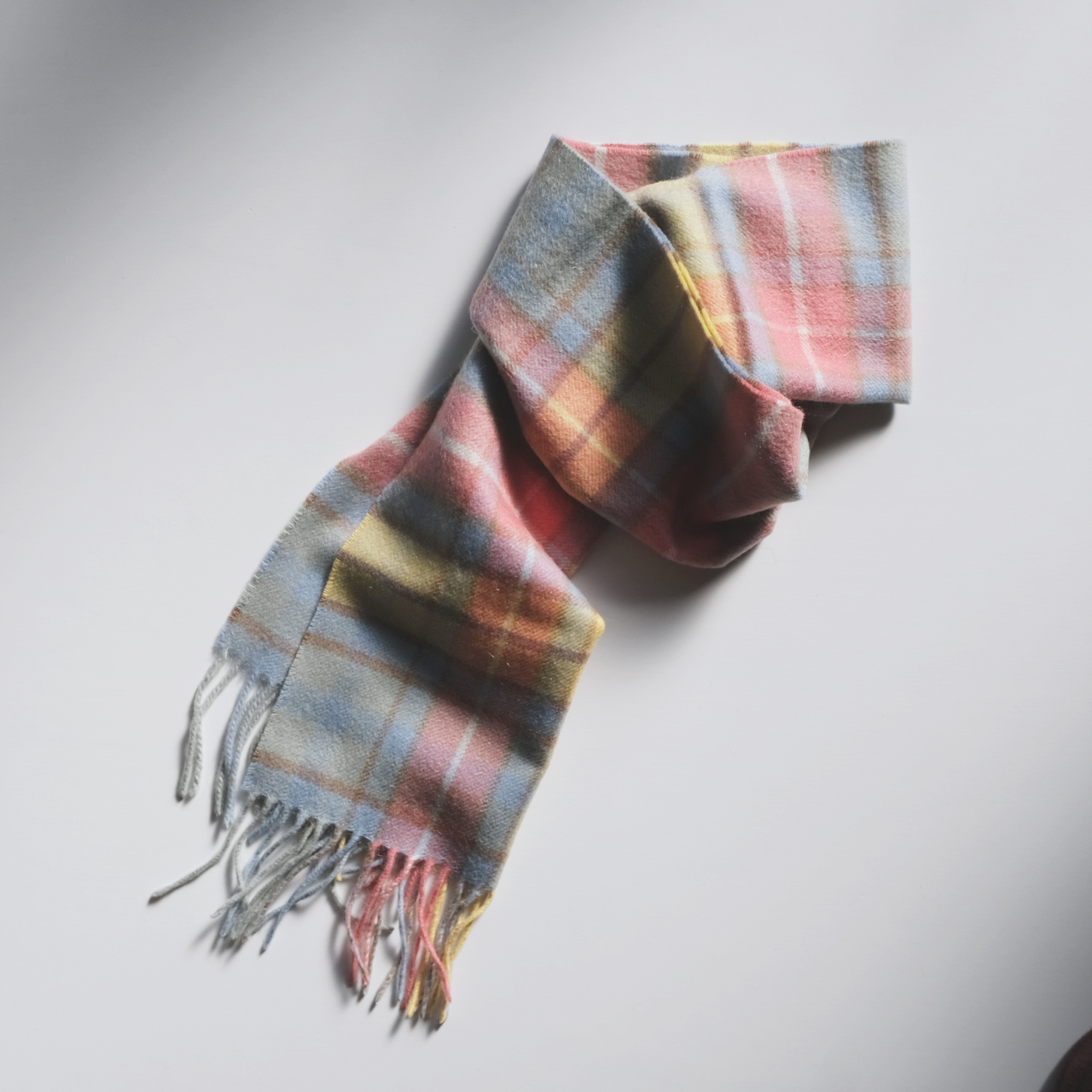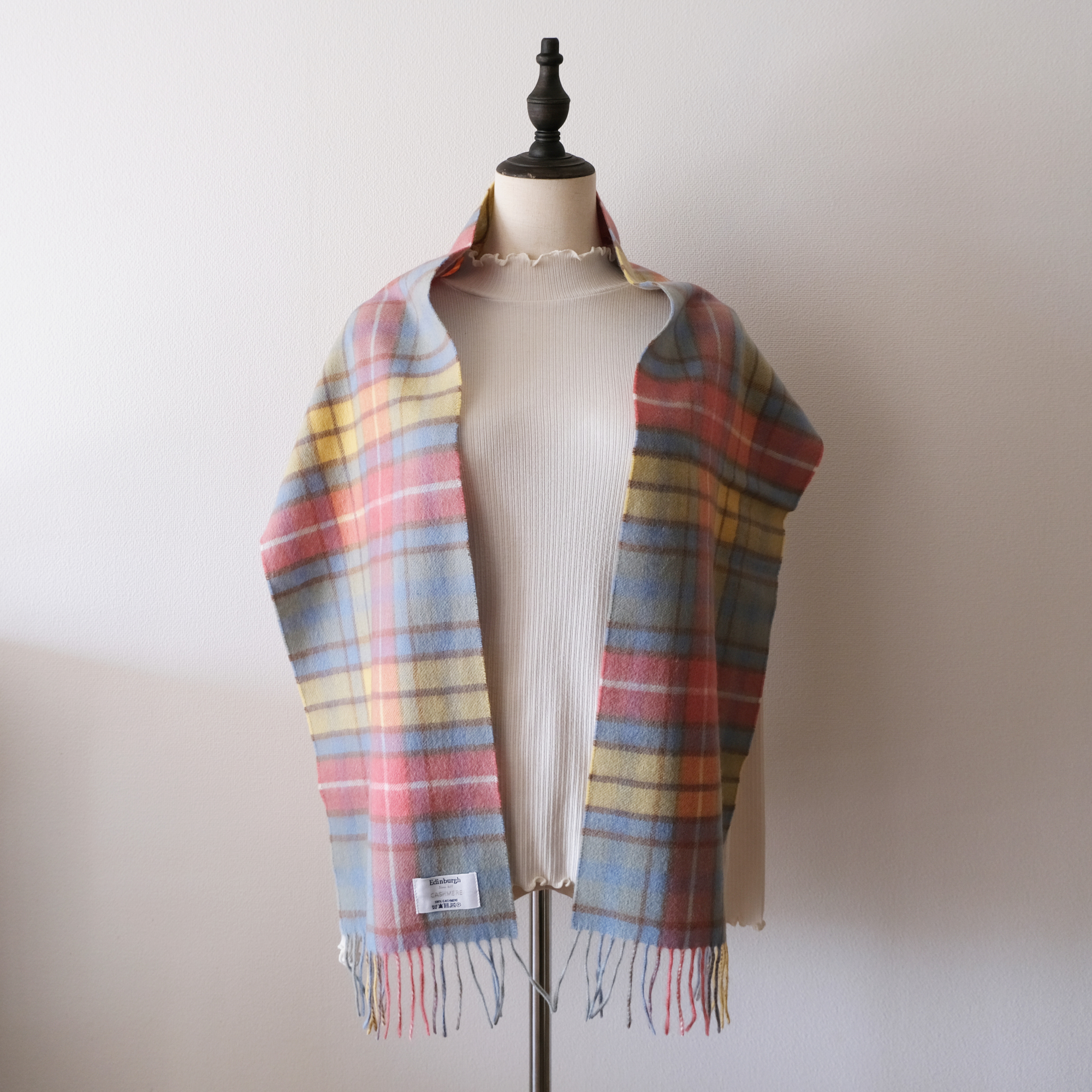 スコットランドより輸入しましたカシミヤ100%のスカーフです。軽く小ぶりでスーツやジャケットにもスッキリと合わせやすく、かつカシミヤのちからで首元をぽかぽかとあたためてくれます。
