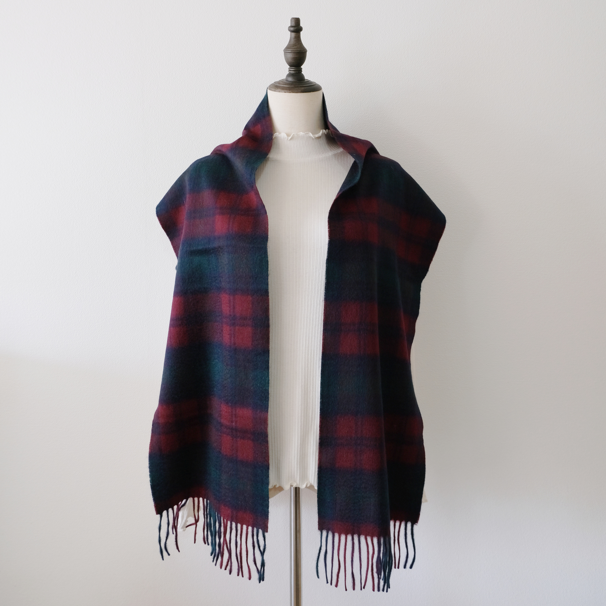 スコットランドより輸入しましたカシミヤ100%のスカーフです。軽く小ぶりでスーツやジャケットにもスッキリと合わせやすく、かつカシミヤのちからで首元をぽかぽかとあたためてくれます。