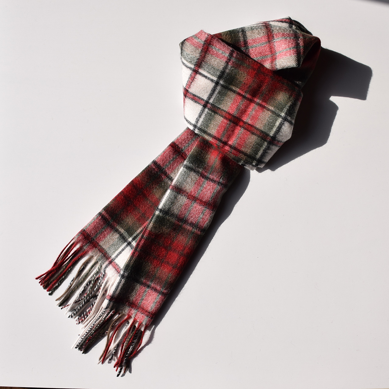 スコットランドより輸入しましたカシミヤ100%のスカーフです。軽く小ぶりでスーツやジャケットにもスッキリと合わせやすく、かつカシミヤのちからで首元をぽかぽかとあたためてくれます。