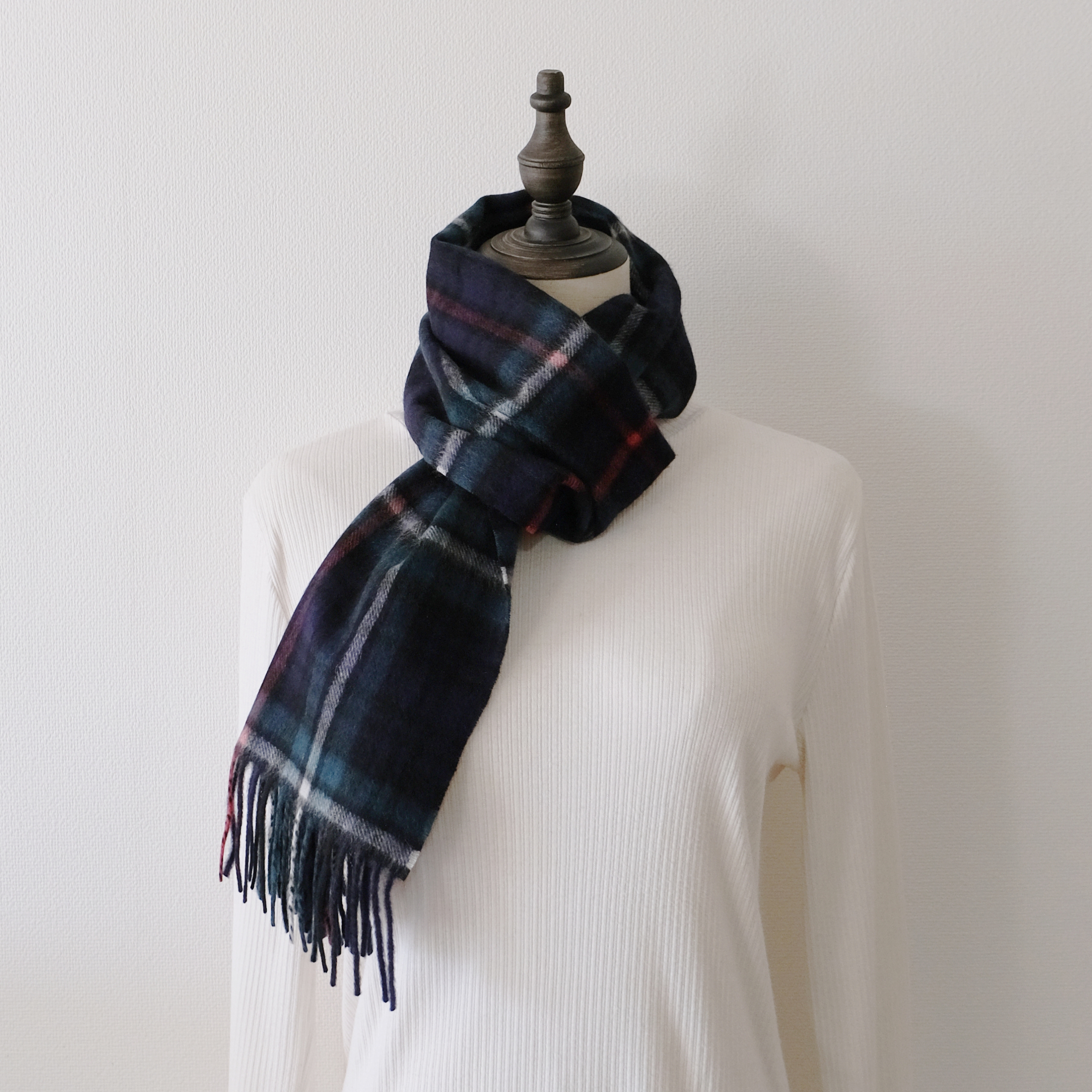 スコットランドより輸入しましたカシミヤ100%のスカーフです。軽く小ぶりでスーツやジャケットにもスッキリと合わせやすく、かつカシミヤのちからで首元をぽかぽかとあたためてくれます。