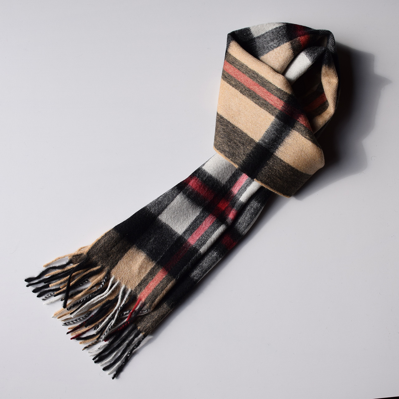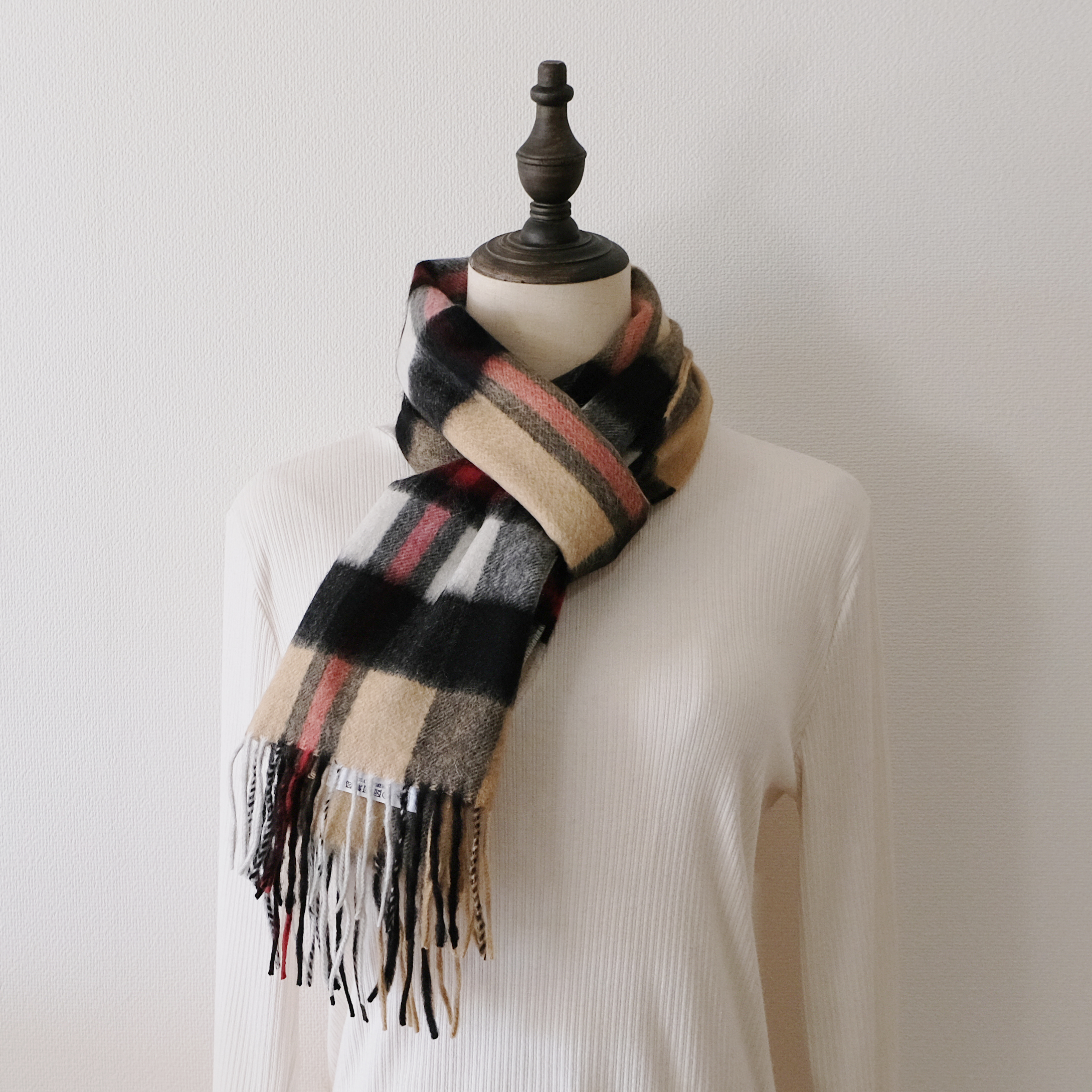 スコットランドより輸入しましたカシミヤ100%のスカーフです。軽く小ぶりでスーツやジャケットにもスッキリと合わせやすく、かつカシミヤのちからで首元をぽかぽかとあたためてくれます。